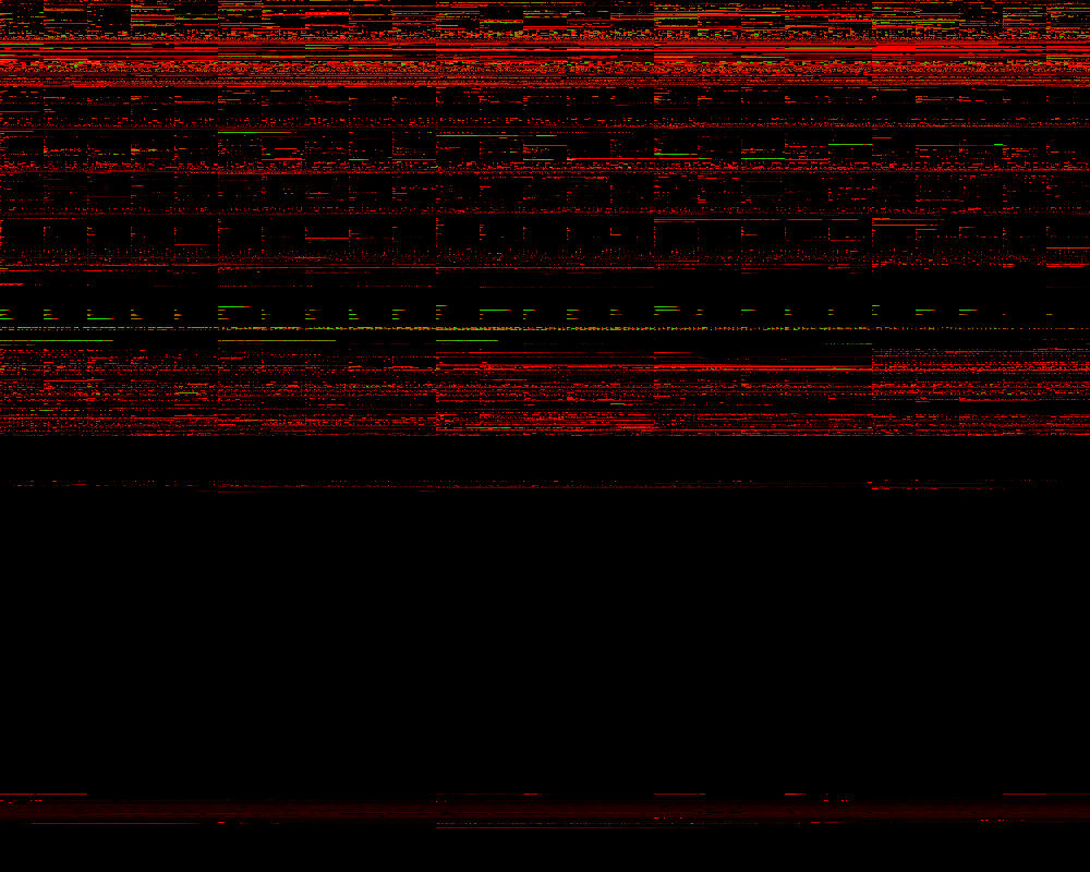 这张图片是1000×800像素。每个像素代表2,500个ISBN。如果我们有一个ISBN的文件,我们会让那个像素更绿。如果我们知道一个ISBN已经发行,但我们没有匹配的文件,我们会让它更红。